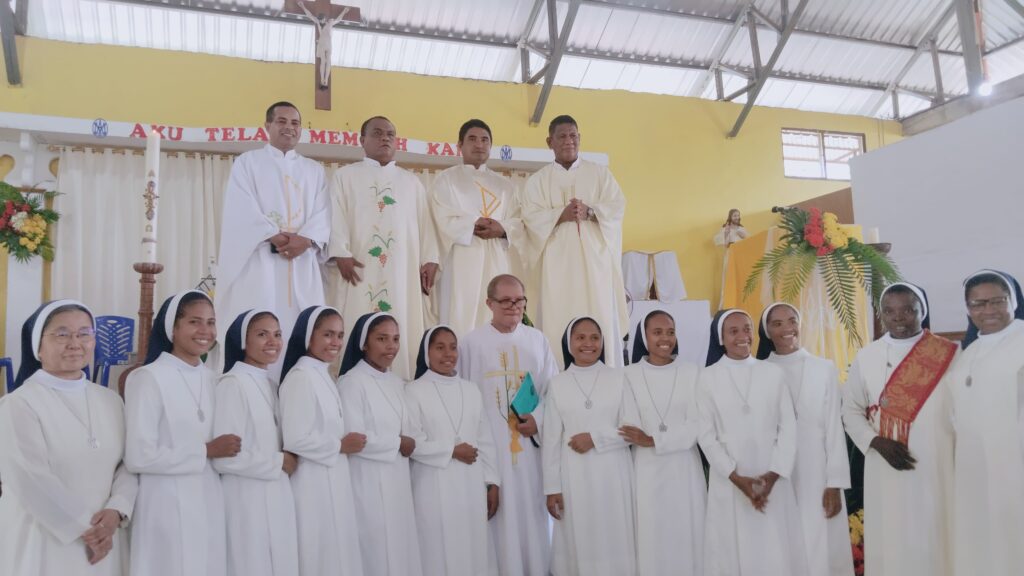 Avec Imtema Joy, nous avons communiqué que le 24 mai 2025, la première profession de M. Agata L. Koten, M. Auxilia U. Nahak, M. María Jelita Ikun, M. Fransiska Belak, M. Hiron, M. Rosalia Y. De ce médium, nous voulons féliciter tout le monde et leur envoyer nos meilleurs voeux pour cette grande étape de sa vie qui commence de la main de Maria Immaculate.
