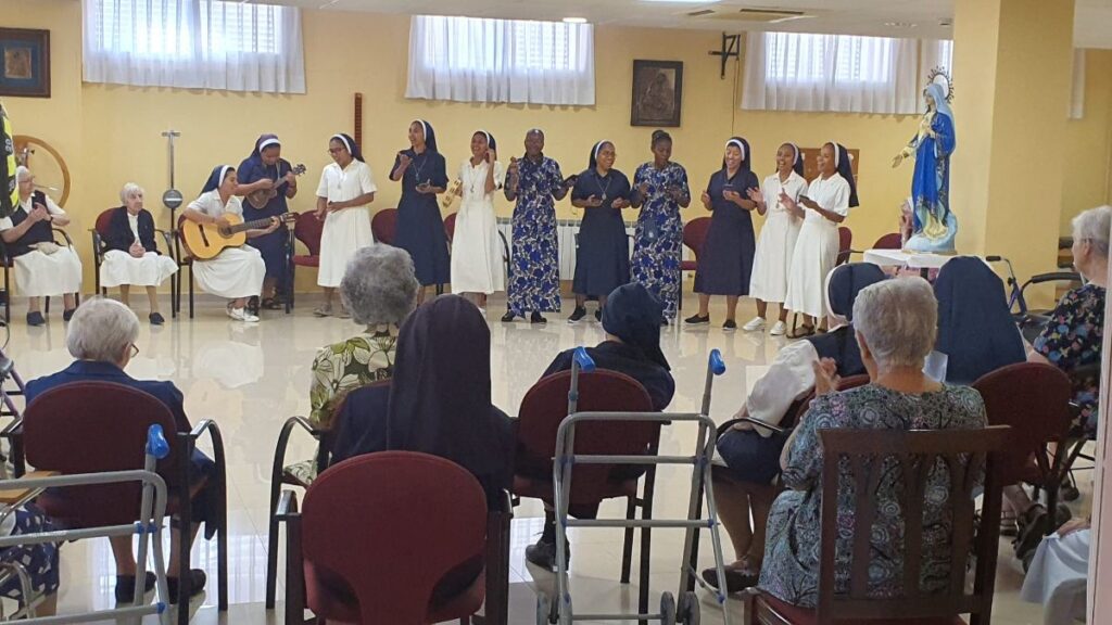 Las junioras también han tenido ocasión de visitar a las hermanas mayores de la residencia de Las Rozas (Madrid) acompañadas de M. Rosa Kang y M. Ingrid Matos. FELIZ ENCUENTRO, celebrado el 16 de agosto, lleno de vida, canciones, bailes, charlas y emotivos encuentros que dejaron a todas con ganas de repetir.